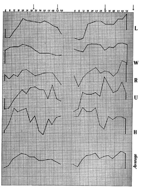 [195] If shallowing accompanies quickening, the respiratory activity may be no greater than before; but since depth alterations were seldom observed in these trials after the first day of experimentation, the rise in rate may be taken as a fair measure of the influence of the stimulus.