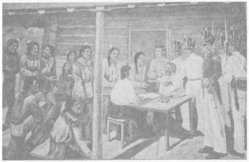 Caddo Indian Treaty of Cession, July 1, 1835. Mural in Louisiana State Exhibit Museum, Shreveport.
