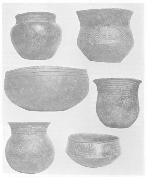 Between A.D. 1100 and 1200 the early Caddo culture was changing into a simpler culture that has been named Bossier, for the parish in which it was first discovered (Webb 1948a). The large centers faded out or were inhabited by small groups. The people seem to have been secure, not menaced, and beginning to spread out along the streams in small settlements or family homesteads. Local materials were used and few exotic objects have been found. Burial customs became simpler, usually single graves with a few offerings and situated near the home or in small cemeteries. The pottery of the Bossier folk was of good quality and still had some of the decoration by engraving, incising, and punctating techniques of the earlier period, but increasing amounts of everyday wares were decorated by simple brushing (similar to Plaquemine pottery of eastern and southern Louisiana).