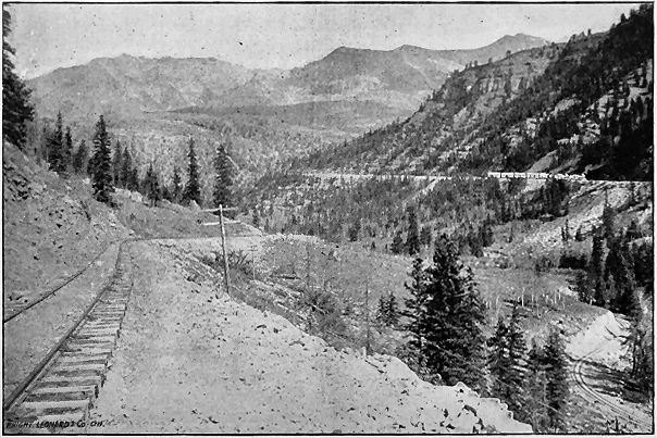 Cerro Summit.—The ascent is commenced directly after leaving Cimarron station on the westward journey. From here the Uncompahgre Valley, its river and the distant, picturesque peaks of the San Juan are within full sight of the traveler.