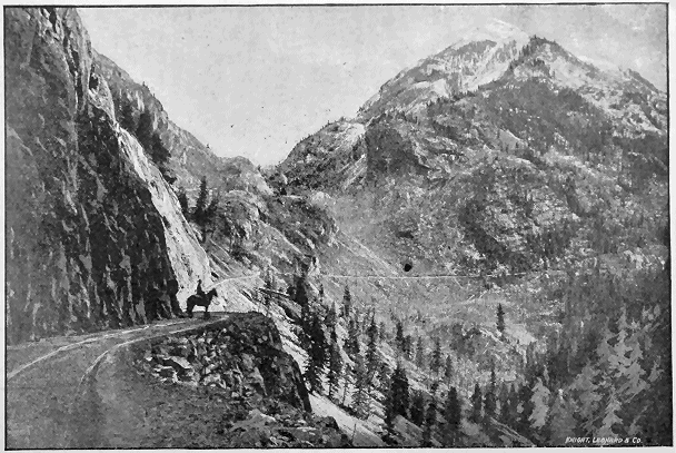 From Durango the tourist has the choice of two routes to complete the "Circle" tour; either via the Rio Grande Southern Railroad, through the Mancos Valley, the Lost Cañon, the Valley of the Dolores and the Dolores Cañon to Rico, over the Lizard Head Pass by Trout Lake and Telluride, down the San Miguel and Leopard Creek to Ridgway; or via the Denver & Rio Grande, through the Animas Cañon to Silverton, over the Rainbow Route (Silverton Railroad) to Ironton, and thence over the famous Ironton and Ouray Stage Road to Ouray.