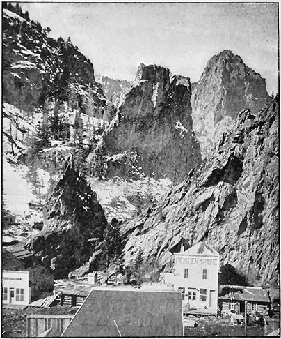 Cimarron Cañon.—Western entrance to Black Cañon, the road passing up Cimarron Creek, where it debouches in the Gunnison. The Cimarron abounds in trout and the country round about swarms with large game.