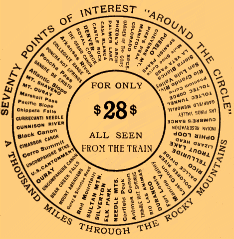 Tickets for the journey "Around the Circle" will be sold for $28.00 from Denver, Colorado Springs, Manitou and Pueblo.