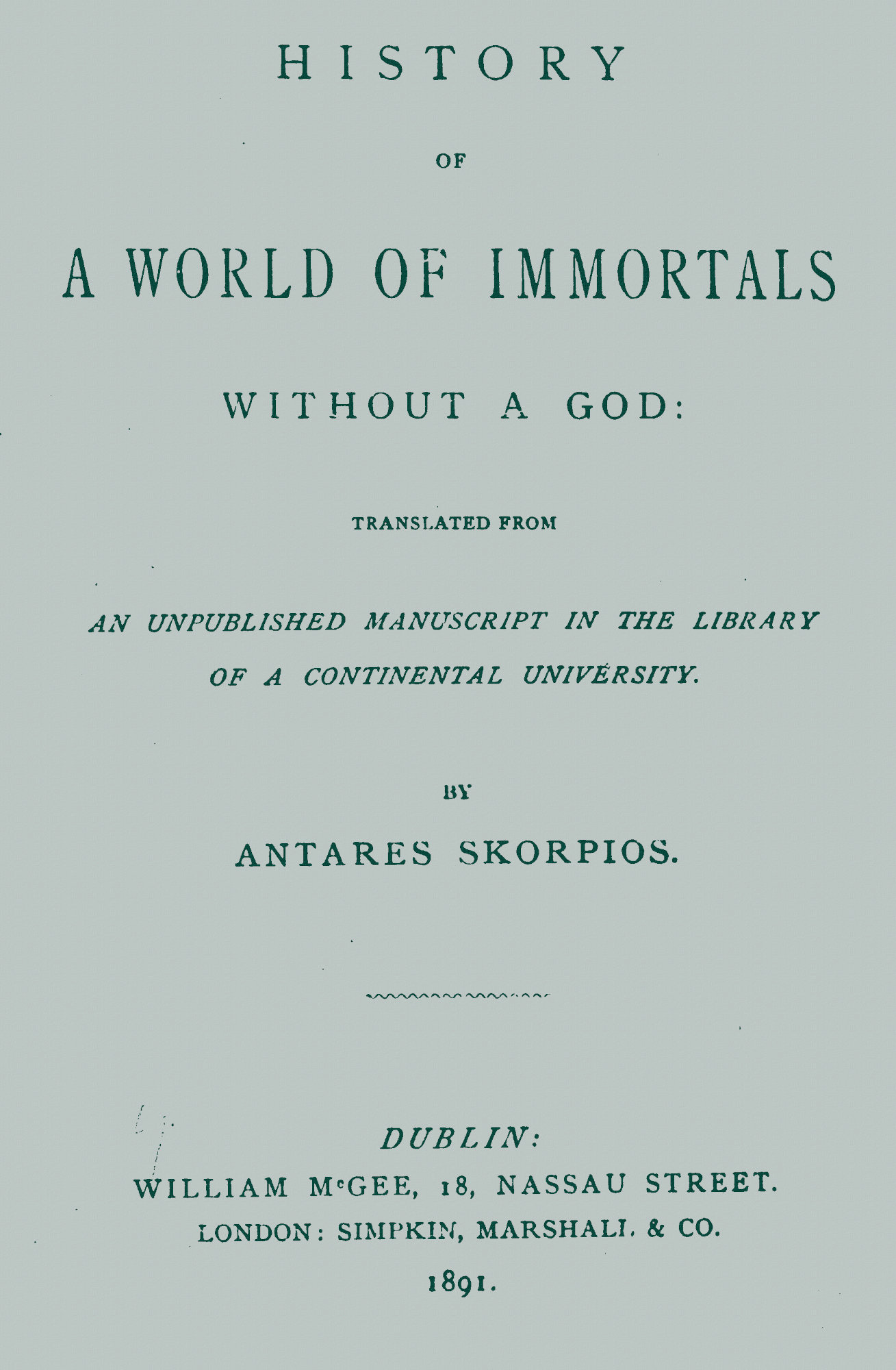 And here ends our knowledge of the Godless Immortals. It is not likely that their hundred and sixty years’ additional existence have lightened the World-Weariness and Sorrow which was plainly settling down upon them like a heavy pall.]