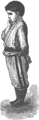 One spring day, after an unusually severe winter, Jotham presented himself before his mother in a blue farm-frock, with his pants tucked into a pair of two capacious cowhide boots.