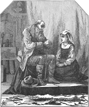 A rosy-cheeked, blue-eyed young woman came to the cottage door in answer to his call, with a rosy-cheeked, blue-eyed baby girl in her arms. “O, the beautiful grass!” cried she, when she saw what had been done; and, “Pretty, pretty!” said the baby girl, clapping her fat, dimpled hands.