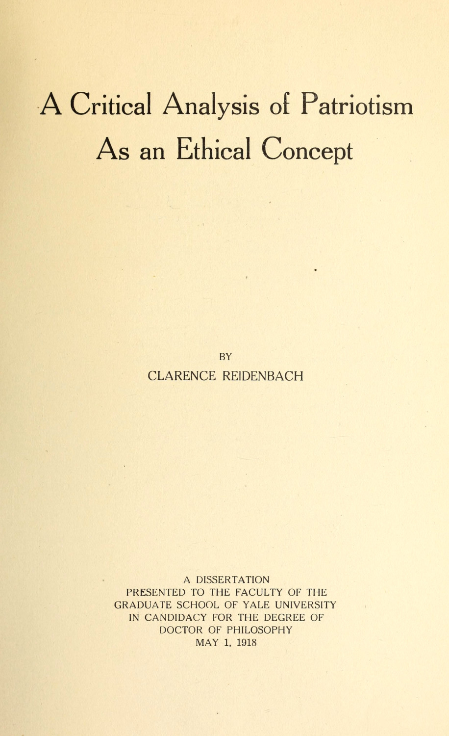 Title: A Critical Analysis of Patriotism As an Ethical Concept