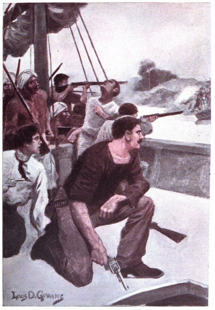 “I don’t know,” said Elliott, vaguely, glancing up at the girl, who leaned against the rail, balancing herself easily as the dhow rolled. “The first thing is to make sure of getting away with the stuff. Henninger thinks we had better put in at Durban, Miss Laurie, and divide the gold and scatter it as much as possible.”