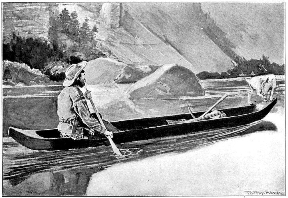 The old fellow in question had been out for a month before the snow was all gone, and his dog, a large and rather vicious hound, to which he was greatly attached, accompanied him. When his food gave out he was working his way back towards Flathead Lake, and struck a stream, on which he found an old dugout canoe, deserted the previous fall by some other prospector or prospectors. Into this he got, with his traps and his dog, and started down-stream.