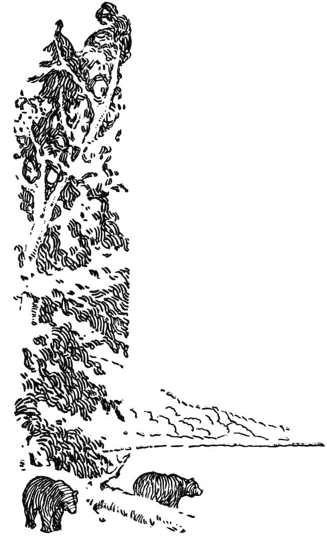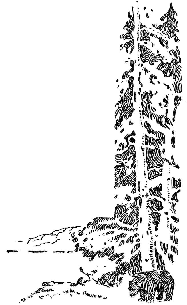 Usually the bears live almost exclusively on roots, berries, insects, and the like. In fact, there is always something grotesque and incongruous in comparing 30the bear’s vast size, and his formidable claws and teeth, with the uses to which those claws and teeth are normally put. At the end of the season the claws, which are very long in spring, sometimes become so much blunted as to be tender, because the bear has worked on hard ground digging roots and the like.