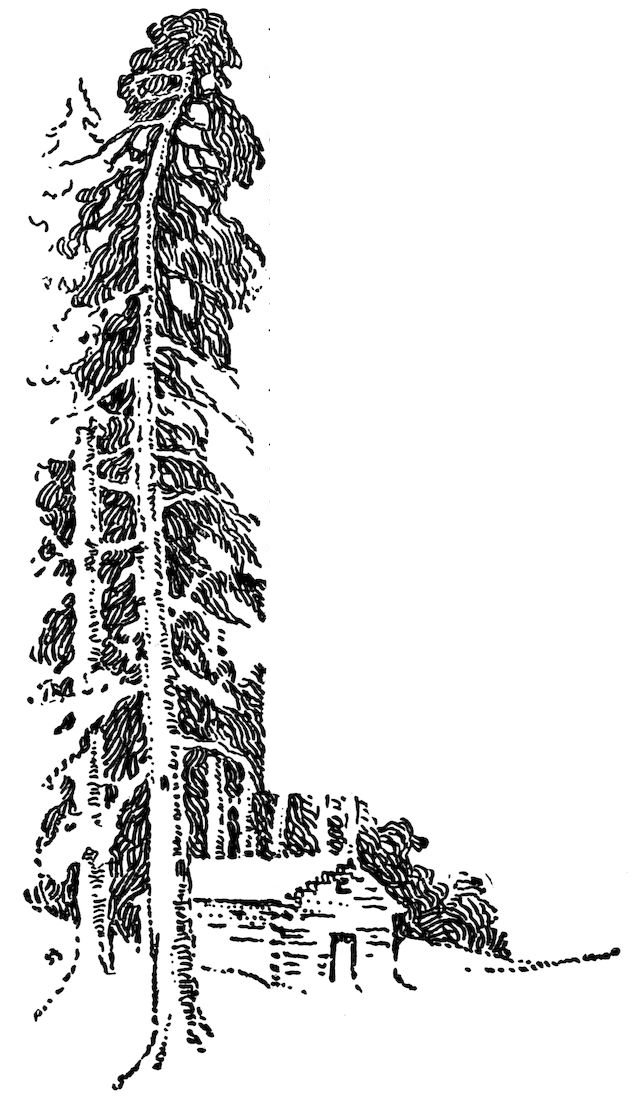 Its favorite abode was the roof of the cabin, at one corner of which, where the projecting ends of the logs were uneven, it speedily found a kind of ladder, up which it would climb until the roof was reached. Sometimes it would promenade along the ridge, and at other times mount the chimney, which it would hastily abandon, however, when a fire was lit. 92The presence of a dog always resulted in immediate flight, first to the roof, and then to the chimney; and when it came inside the cabin it was fond of jumping on a big wooden shelf above the fireplace, which served as a mantel-piece.