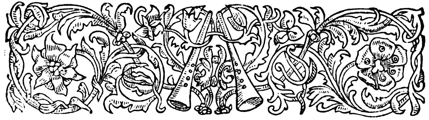 Just then the huntsman wound his horn, and we all rode out over the drawbridge and away into the bright sun and green fields a-hawking. We made a merry day of it. The hounds sped before, starting up many a creature that fled affrighted from us.