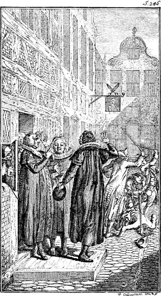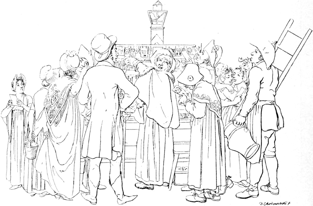 [1] W. Engelmann, Daniel Chodowieckis sämtliche Kupferstiche. Leipzig 1857. Die Nummern dieses Verzeichnisses werden im Folgenden mit E. bezeichnet.
