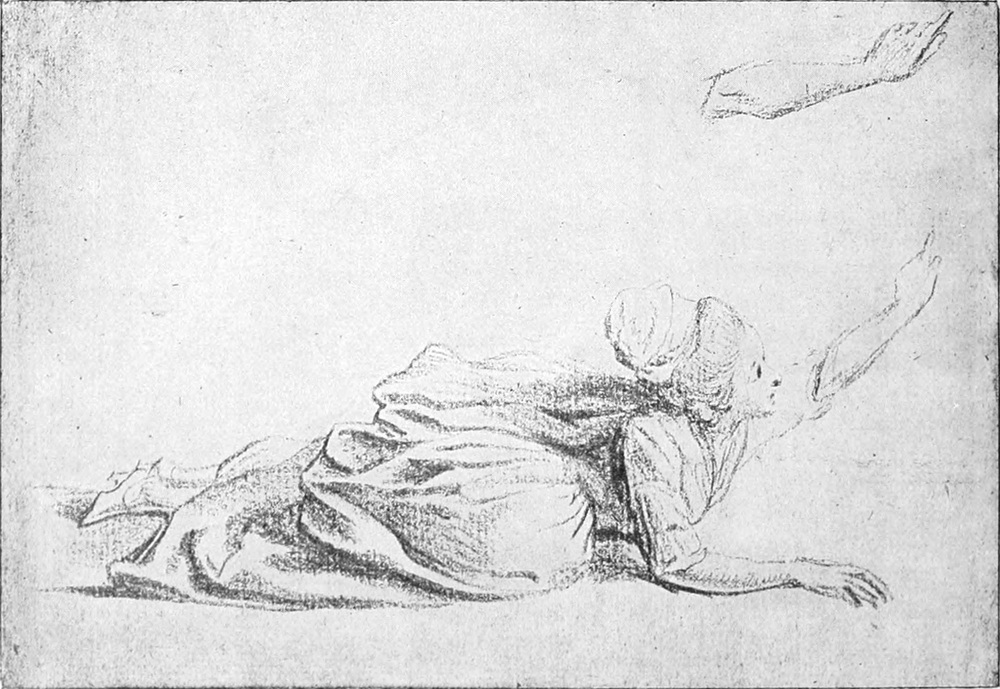 Abb. 187. Entwurf zu der Radierung. Bleistiftzeichnung im Besitz der Frau Dr. Ewald. Berlin. (E. 455.)
