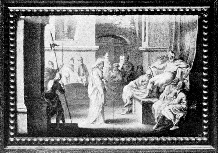 Daß die kleinen, zum Verkauf in Ayrers Geschäft bestimmten Email- und Miniaturmalereien[S. 12] großenteils verschollen sind, ist leicht begreiflich, da derartige Erzeugnisse der Kleinkunst meist schneller Vergessenheit anheimfallen, aus der sie, zumal wenn sie den Namen ihres nachmals berühmt gewordenen Verfertigers nicht tragen, kaum je wieder auftauchen. Nach dem, was sich aus späterer Zeit an verbürgten Arbeiten der Art von unserem Meister erhalten hat, wie den sechs Emails mit Passionsscenen nach Stichen Sebastien Leclercs (im Besitz des Geheimen Rats Professor du Bois-Reymond-Berlin); ausgestellt in der historischen Abteilung der Berliner Kunstausstellung von 1896 (Abb. 5 bis 8), der kleinen Emailbonbonnière mit Puttenspielen (im Besitz der Frau Dr. Ewald-Berlin: ausgestellt ebenda, Abb. 9), einem Emailbildnis Friedrichs des Großen aus gleichem Besitz (Abb. 10) und anderem zu urteilen, dürfen wir den Verlust älterer Emailmalereien nicht allzu sehr beklagen. Auch diese werden meist unselbständige Kopien nach französischen Vorbildern gewesen sein, wenig erfreulich in der Wahl der Farben, wie die genannten Passionsscenen, hinter den Pariser Arbeiten der Zeit technisch zurückstehend und kaum geeignet, der Charakteristik Chodowieckis einen wesentlich neuen Zug hinzuzufügen.