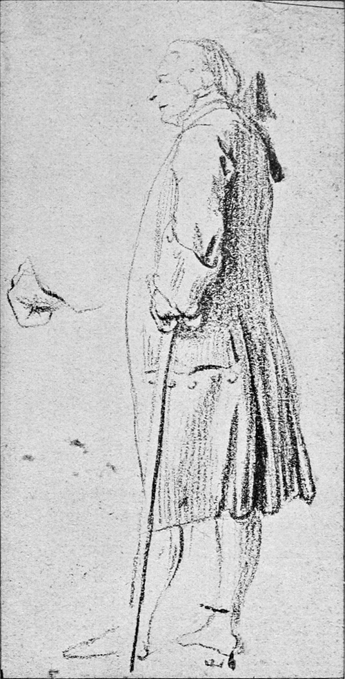 Abb. 153. Studie zum Schließer des Calas. Bleistiftzeichnung im Besitz der Frau Geheimrat Rosenberger. Kösen.