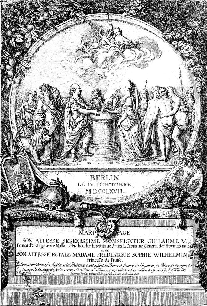 Abb. 28. Allegorie auf die Vermählung der Prinzessin Friederike Sophie Wilhelmine von Preußen mit dem Prinzen Wilhelm V. von Oranien. 1767. (E. 46.)