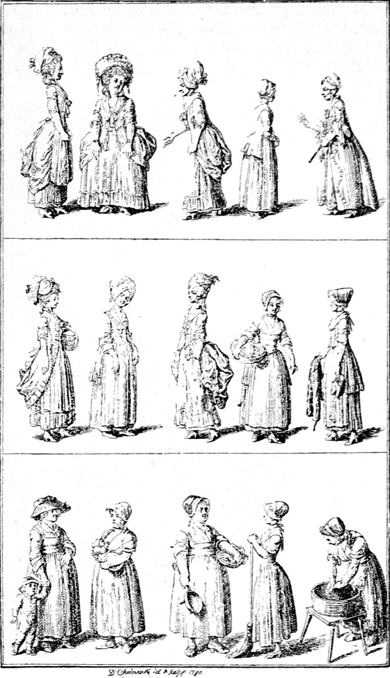 Abb. 162. Trachtenbild aus dem 17. Jahrhundert. Almanac de Gotha. 1795. (E. 517.)
