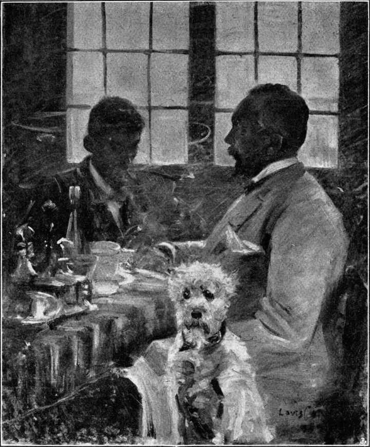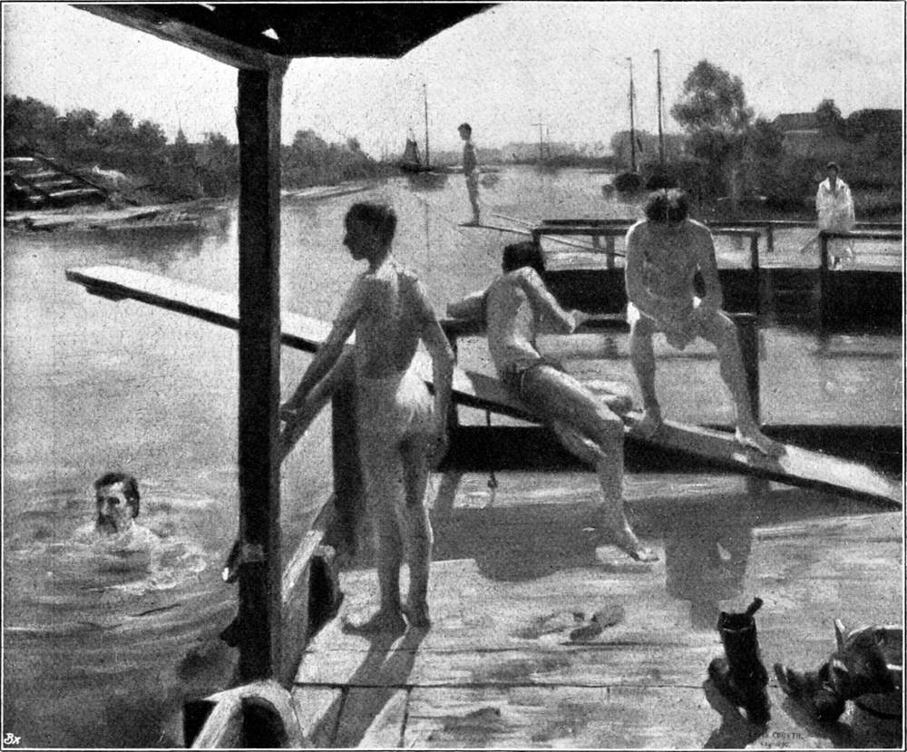 Gegenüber diesem Meisterwerke aber treten — was Inbrunst der Empfindung anlangt — alle übrigen Bilder dieser Königsberger Jahre bescheiden zurück, obwohl sie im einzelnen deutlich genug ein Ausgreifen der künstlerischen Kräfte nach den verschiedensten Seiten hin dartun. Das gilt vor allem für das 1890 gemalte, zum Teil schon in breiten Pinselstrichen hingesetzte „Frühstück“, bei dem der Hauptakzent wiederum auf die durch das Licht bedingte malerische Behand[S. 49]lung gelegt ist. Wundervoll ist hier die farbige Apostrophierung des Stillebens auf dem Tisch, nicht weniger auch der ganz skizzenhaft gegebene Köter im Vordergrunde (Abb. 12). Dagegen ist die im gleichen Jahre gemalte „Susanna im Bade“ mehr als Studie, d. h. als Versuch, einen Frauenakt belebt vor einem indifferenten Hintergrund aufzuzeichnen, denn als geschlossene Komposition interessant (Abb. 15), während die prächtige Schwimmanstalt vom Jahre 1890, die noch in Königsberg entstand und nach einem Motiv des Pregels gemalt wurde, zum erstenmal den Meister ganz im Banne des Pleinairismus zeigt (Abb. 16). Wie das Sonnenlicht die malerische Wirkung des Bildes bestimmt, wie man hier das Widerspiel des atmosphärischen Lebens empfindet, wie das Ganze rein zufällig gesehen zu sein scheint, das greift in der Tat bereits bemerkenswert einem großen Kapitel neuer Kunstgeschichte voraus, die die hier vorgetragenen Lehren zu ihrem ureigenen Evangelium gemacht hat. Wundervoll ist auch hier die malerische Durchbildung der menschlichen Gestalten, wie ja Corinth von jeher ein Meister in der Herrschaft über die Anatomie des Körpers gewesen ist.