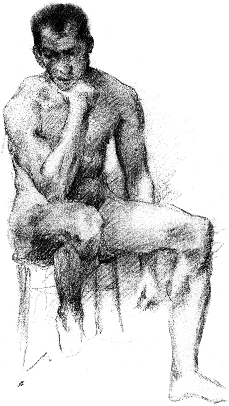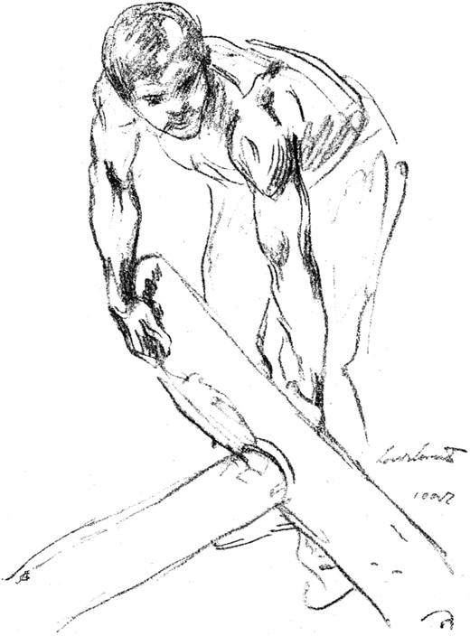 Zwischen dem Weggang von Königsberg und dem in der Selbstbiographie anschließenden Pariser Aufenthalt liegen die Jahre von 1880 bis 1884, die Corinth in München verbrachte, wo er außerdem Gelegenheit hatte, als Soldat sein Jahr abzudienen. Es kann nicht überraschen, daß es den starrnackigen Ostpreußen damals nach der süddeutschen Residenz hinzog, weil der Ruf Münchens als Kunststadt nie höher gewertet worden ist als vielleicht gerade in jenen Jahren. Und mit Recht. Denn hier hat sich in der Tat die Erneuerung der modernen deutschen Kunst vorbereitet. Nicht weil Leibl und Trübner hier wirkten, die[S. 33] damals noch völlig unbekannte Größen waren, sondern weil gerade der akademische Betrieb hier eine — man kann sagen — im übrigen deutschen Kunstschaffen unbekannte Freiheit — eine der Natur zustrebende Art der Betätigung hatte, aus der so viele unserer besten Meister als starke und eigenwillige Individualitäten hervorgegangen sind. Es sei nur an die Verdienste des alten Piloty erinnert, der, selbst noch in traditioneller Kunstanschauung völlig befangen, als Lehrer[S. 34] den Jungen jene prachtvolle Dosis Selbstbewußtsein, ja jene neuen Lehren vermittelt hat, die unmittelbar dem Aufschwung der deutschen Malerei vorgearbeitet haben. Desgleichen an Wilhelm von Diez und Ludwig Löfftz, in dessen Schule Corinth — wie so viele seiner damaligen Kollegen — eintrat. Aus dieser Münchener Zeit sind uns ebenfalls nur sehr spärliche Proben seines Könnens erhalten, so der Akt, der einen der Schächer einer Kreuzigungsgruppe darstellen soll und zweifellos nach einem Thema, das der Lehrer gestellt hat, gemalt ist. Sehr bedeutsam treten bei diesem im Besitz von Gerhart Hauptmann befindlichen Bild der[S. 35] Sinn für die Plastik des menschlichen Körpers und doch auch ein gewisses selbstsicheres Können hervor, wenn die Arbeit sonst auch noch keinen Blick in die Zukunft gestattet (Abb. 3). Im ganzen aber ist Corinth auch in dieser Zeit noch wenig produktiv gewesen, wie es überhaupt als besondere Eigenart[S. 36] seines sich entwickelnden Talentes — sogar noch im Verlaufe der nächsten zehn Jahre — betont werden muß, daß er überall lieber in sich aufgenommen als künstlerisch produziert hat. Vielleicht sind von keinem Maler der Moderne so wenige Frühwerke festzustellen und nachzuweisen wie von unserem Meister, und sicher ist es auch kein schlechtes Zeichen seiner erwachenden Könnerschaft, daß er gerade in seiner Jugend mit seinen Kräften so sorgsam hausgehalten hat. Viel mag zu dieser Sparsamkeit der Betätigung auch ein gewisses mangelndes Selbstvertrauen beigetragen haben, das nur der etwas schwerfälligen Art des Ostpreußen[S. 37] entsprach, ja es scheint psychologisch durchaus begründet, daß Corinth eigentlich erst auf dem Boden Berlins, in dieser von echter Kampfesstimmung gehöhten Atmosphäre, später ganz aus sich herausging, als ihn das Beispiel der Kollegen und die bittere Notwendigkeit des Tages dazu zwangen. Einmal frei geworden aber in dieser neuen Umgebung, hat er versucht, alle Versäumnisse der früheren Jahre doppelt wett zu machen und der Fülle der Gesichte, dem sprudelnden Reichtum seiner Phantasie wirklich freie Bahn zu schaffen. Die akademische Lehrzeit in München dagegen verschwindet in ein Nichts, empfände man nicht un[S. 38]bewußt, daß der Einfluß von Löfftz auch für ihn sein Gutes gehabt hat und daß gerade er ihn vorbereitend schon auf jene Themen hingelenkt hat, in denen er später wirklich ein Meister werden sollte.