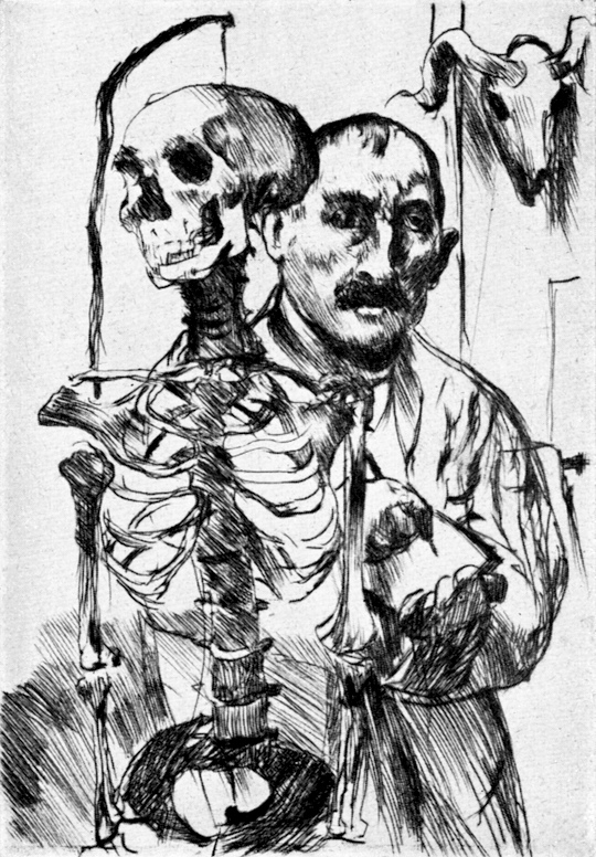Der Künstler mit dem Tod. Radierung