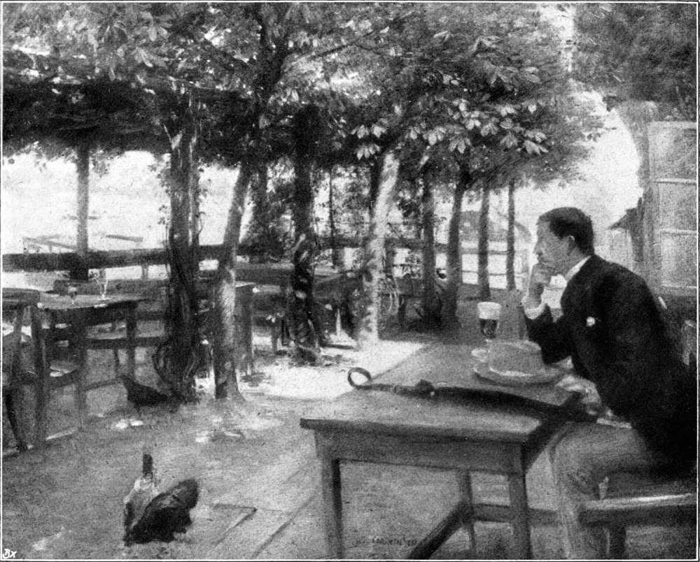 An diese Königsberger Zeit erinnert endlich der hier wiedergegebene Ausschnitt aus einem Gemälde seines damaligen Freundes und Kollegen Karl Bublitz, der den Meister im Atelier vor dem Bilde der eben erwähnten Susanna gemalt hat (Abb. 14). Corinth seinerseits hat dem Schöpfer dieses Bildes gelegentlich eines späteren Besuches in seiner ostpreußischen Heimat (im Jahre 1893) zurückgegeben, was er von ihm empfangen hat. Der „Wirtshausgarten am Pregel“ zeigt Bublitz nachdenklich vor einem Glase Bier sitzend, interessiert hinausblickend auf das bewegte Leben des Flusses. Es ist hier fast die gleiche Örtlichkeit festgehalten wie in der erwähnten Schwimmanstalt (Abb. 17).