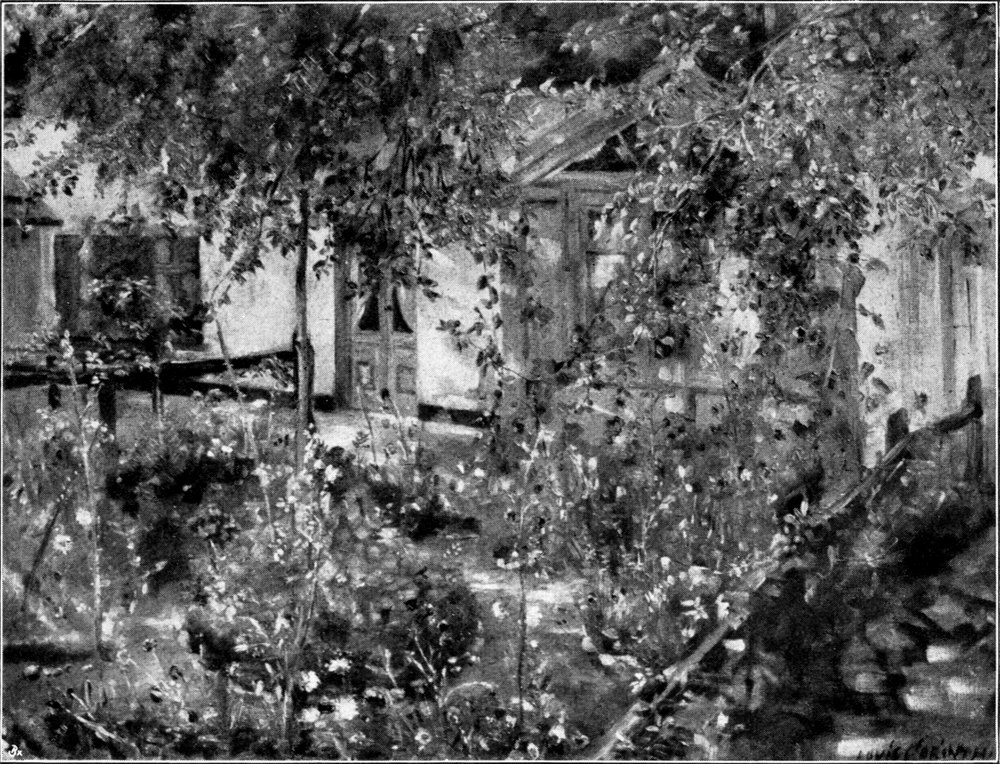 Aus dem fruchtbaren Jahre 1904 stammt noch die prächtige Szene unter dem Titel „Frauenräuber“, die ähnlich monumental empfunden ist wie das früher genannte Gemälde „Perseus und Andromeda“, das als eines der ersten vorbildlichen Werke auf Berliner Boden gewertet wurde. Beide Bilder stehen in Thema und Behandlung wie zwei Geschwister nebeneinander, und was jenem zuerst erwähnten Werke im besonderen nachgerühmt werden konnte, trifft unbedingt auch auf die zuletztgenannte Schöpfung zu. Dagegen ist der „Blühende Garten“ vom gleichen Jahre auch in diesem Zusammenhang nicht zu übersehen, weil er wieder einmal ein Beispiel reiner Landschaftsmalerei ist, der Corinth eigentlich erst in den letzten zehn Jahren in wahrhaft großem und alles überragenden Stil nachgegangen ist (Abb. 56).