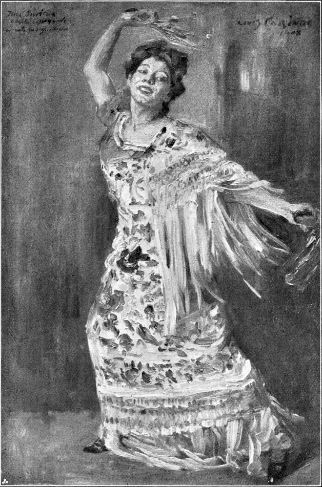 In den bereits mehrfach zitierten „Legenden aus dem Künstlerleben“ finden sich einige Kapitel, die Corinth in Erinnerung an seinen zehnjährigen Münchener Aufenthalt geschrieben hat. Schilderungen sarkastischer Art, in denen er z. B.[S. 50] den im Allotria-Kreise üblichen Götzendienst und Firlefanz wunderbar verspottet; Skizzen von einer derben Ursprünglichkeit, die niemand ungelesen lassen sollte, den die Persönlichkeit unseres Meisters wirklich interessiert. Prächtig z. B. — und vielleicht von keinem Literaten übertroffen — ist der Abschnitt über „Thomas Theodor Heine und Münchens Künstlerleben am Ende des vorigen Jahrhunderts“, und bitter verdacht haben ihm seine Kollegen jenes andere Kapitel, in dem die Erinnerungen an den Allotria-Kreis aufgezeichnet sind. Die haben sogar zu einer kleinen Polemik geführt, aus der Corinth ganz zweifellos als Sieger hervorgegangen ist, nicht nur weil er dank seiner haarscharfen Dialektik die Lacher auf seiner Seite hatte, sondern weil man deutlich empfand, wie peinlich auch den herrschenden Herren in der Münchener Künstlerrepublik diese der Wirklichkeit abgelauschten Schilderungen sein mußten.