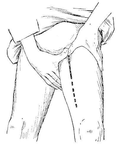 | Diagram illustrating method of compressing the Main Artery of the Thigh | 278 |