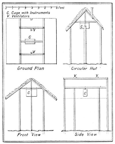 3. Observations with a view to determining the character of the local climate. The traveller passing through a country can do little in this way, as long continued uniform observations in one place are necessary to fix the annual variations. Still, the recording of such data as may be obtained is always important in a little-known region, and the work of several travellers at different seasons will allow some fair deductions to be drawn. When a day is spent in camp, much importance attaches to regular observations made every two hours, from which the diurnal changes of climate may be ascertained.