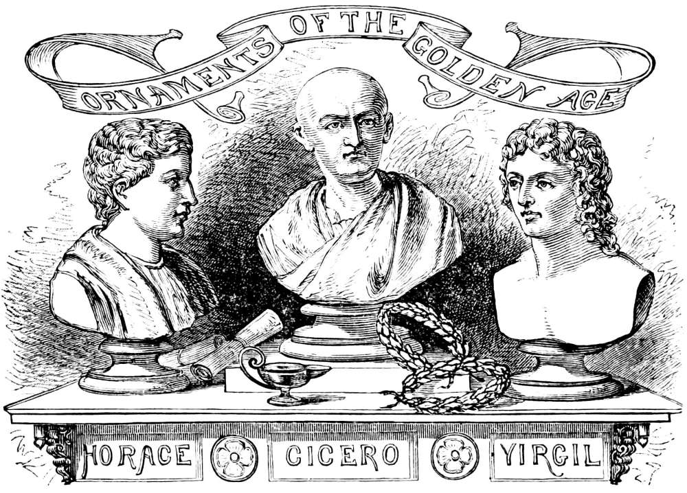 Periods of the Golden Age, 329.—Cicero, 330.—Varro, 337.—Julius Cæsar, 339.—Sallust, 343.—Cornelius Nepos, 347.—Poets of the Ciceronian Period, 348.—Lucretius, 348.—Catullus, 352.—Poetry of the Augustan Age, 354.—Virgil, 355.—Virgil’s Eclogues, 359.—Georgics, 360.—Æneid, 362.—Horace, 369.—Varius, 375.—Tibullus, 375.—Propertius, 377.—Ovid, 379.—Prose Writers of the Augustan Age, 382.—Livy, 382.