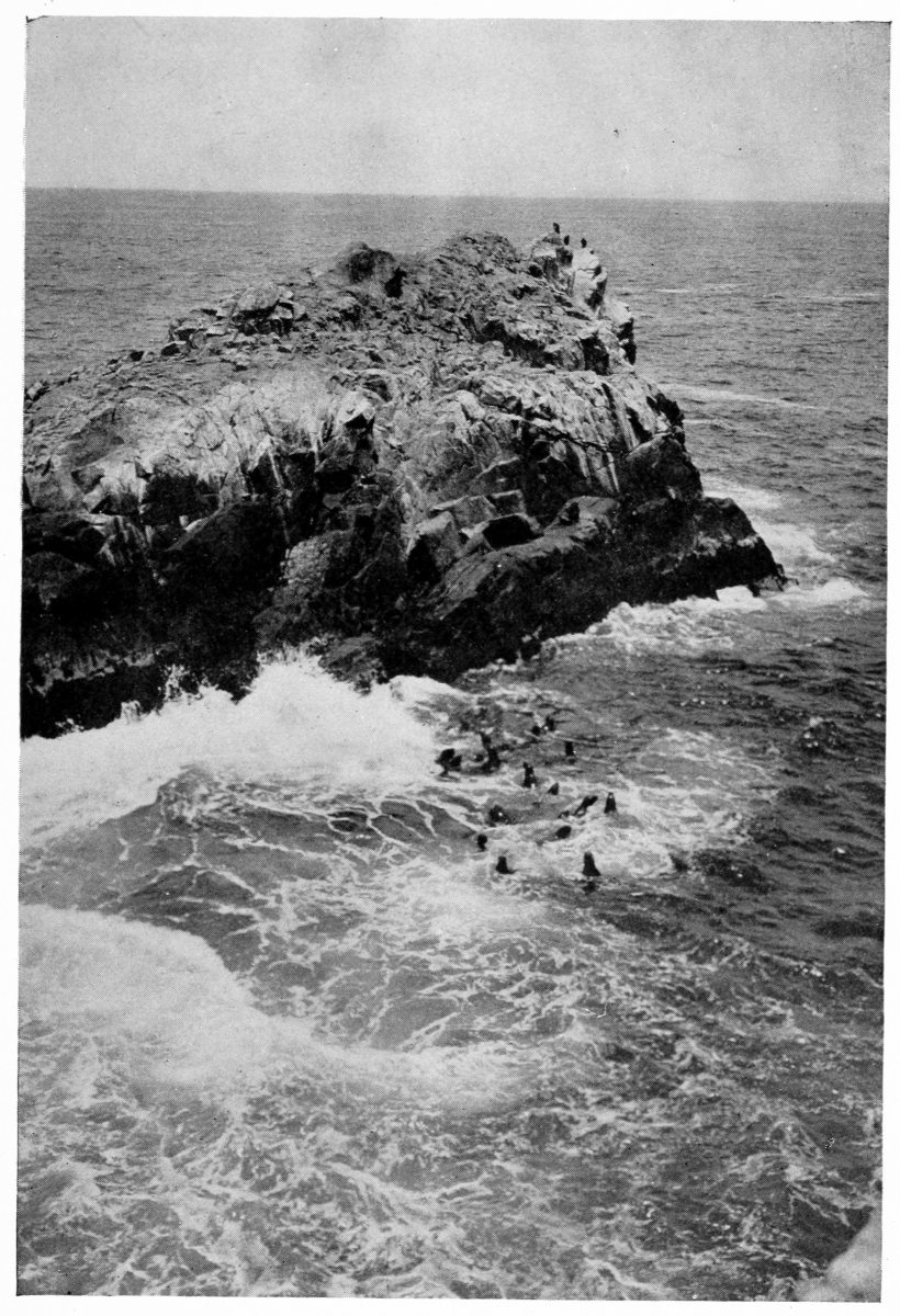 The birds fly out at sunrise and spend the day in fishing, resting upon the waves when they are tired, and at sunset return to their giant stone islands for the night. Alone, the call of a sea-bird would be lost in the fury of the meeting of cliff and sea. But as a mass of white gulls can assume blackness by mere quantity, so their mingled voices can take on an overwhelming poignancy of sound. Louder than the crash of breakers, louder than the barking and snort{18}ing of the bald, fat seals loping over them in droves, surges the great cry of the birds, as, in a shower of wild calls diverse as themselves, they settle upon the rocks: pelicans, cormorants, mollyhawks, gannets, sea-mews, gulls, osprey, occasional tropical flamingoes lost among ice-birds and stormy petrels, wild ducks, Inca terns, and the weird, amphibious “bird-child,” which tries to stand erect, fluttering its cartilaginous wings, braced by its indistinguishable tail. All the birds of the ocean gather here, from sandpeeps to albatrosses, a surfeit of life to accentuate the barrenness of the shore. They are multiplying every year their already limitless myriads, useless to man as the savages of the interior, without commercial value now of any kind, yet not annihilated on that account. It is said that all are souls of sailors lost at sea. In each stormy petrel a lost apprentice lives again, in each pelican a boatswain, in each mollyhawk a chief officer, in each albatross a sturdy old captain.