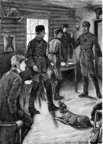"Our stout young friend has spoken words of wisdom," began Yardsley, rising. "I must say I never enjoyed a winter like this in me life, an' I hate ter think of yer leavin'. These here woods will sartingly seem like a silent, dreary place, arter this. I can say, without meanin' ter flatter no one, that I never come acrost a likelier crowd of young chaps—success ter ye all!"