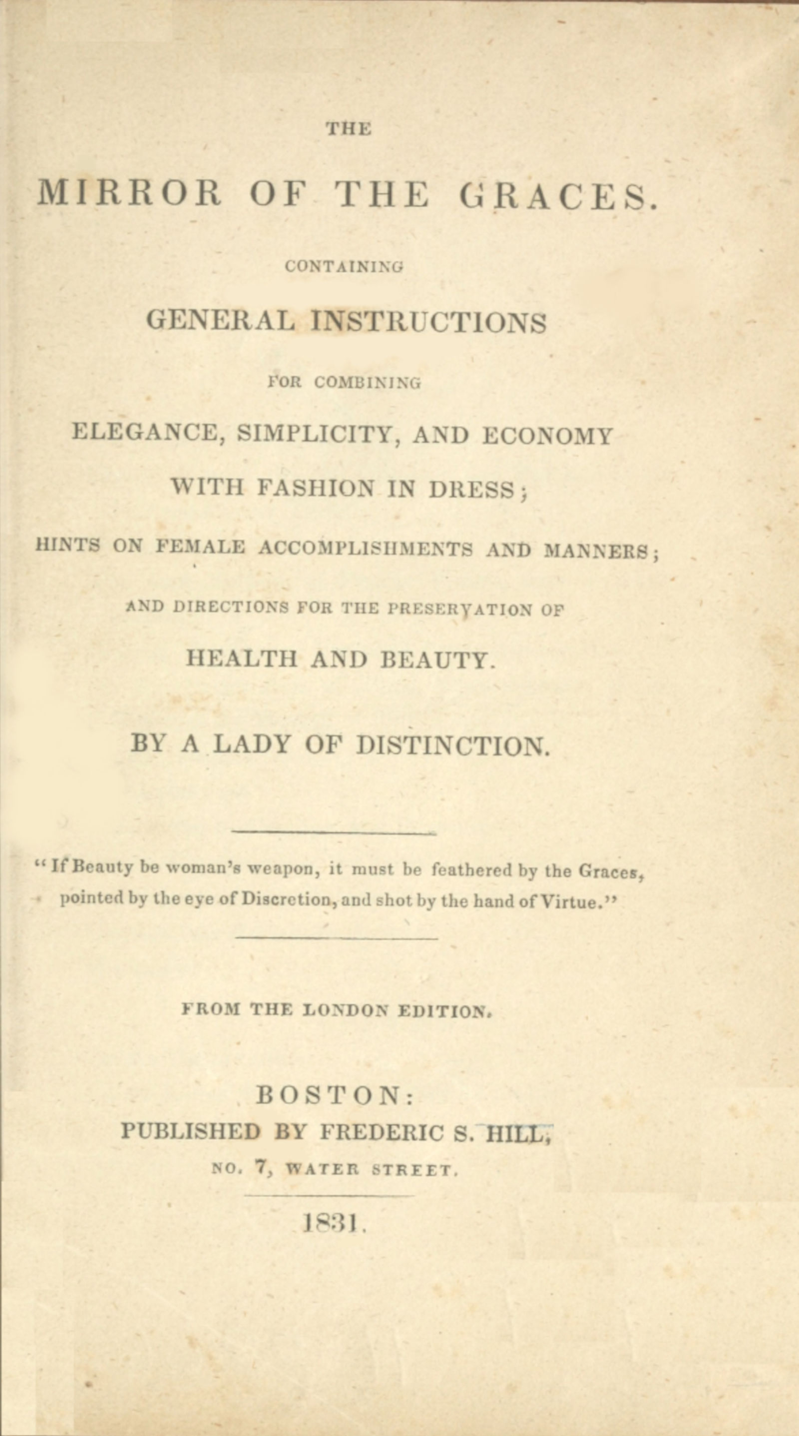 Mothers, perhaps, (those estimable mothers who value the souls as the better parts of their daughters,) may start at such a text. But I call them to recollect, that it is “good all things should be in order!” This is a period when absurdity, bad taste, shamelessness, and self-interest, in the shapes of tire-men and tire-women, have arranged themselves in close siege around the beauty, and even chastity, of your daughters; and to preserve these graces in their original purity, I, a woman of virtue and a Christian, do not think it beneath my dignity to lift my pen.