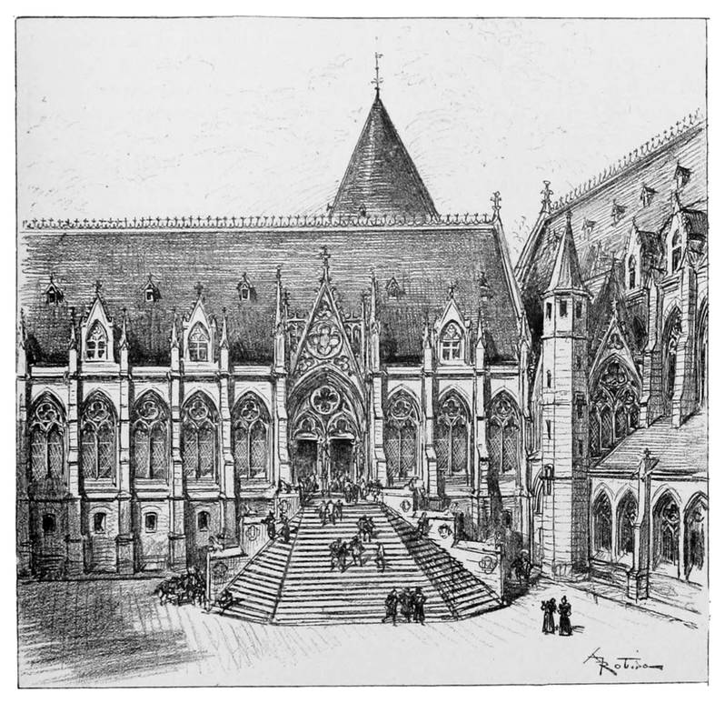Puis le Parlement reste seul en possession, puissance grandissante, en lutte si souvent avec le pouvoir royal; c’est une autre royauté qui commence là, lentement et qui se développe à l’ombre des vieilles tours. Dans ce vieux palais, il semble que toutes les institutions de la France doivent prendre germe, car après les préfets des Empereurs, les chefs francs, les ducs de France et les rois, le pouvoir législatif lui-même, comme ou l’entend aux temps modernes, en sortira. La filiation est directe, du Parlement naîtront les États généraux, et des États généraux l’Assemblée nationale; et le vieux Parlement mourra de l’enfantement le 3 novembre 1790.