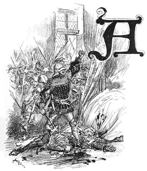 Leudaste fut arraché à sa sécurité par leur attaque; comme il était brave, il fit face au danger et fondit l’épée à la main à travers la bande; blessé, couvert de sang, il put se frayer passage et gagna le Petit Pont sur lequel il s’engagea en courant. Par malheur pour lui, le Petit Pont se trouvait alors en mauvais état, les planches du tablier étaient pourries par endroits et percées de trous. Leudaste en fuyant mit le pied dans un de ces trous et tomba en se brisant la jambe.