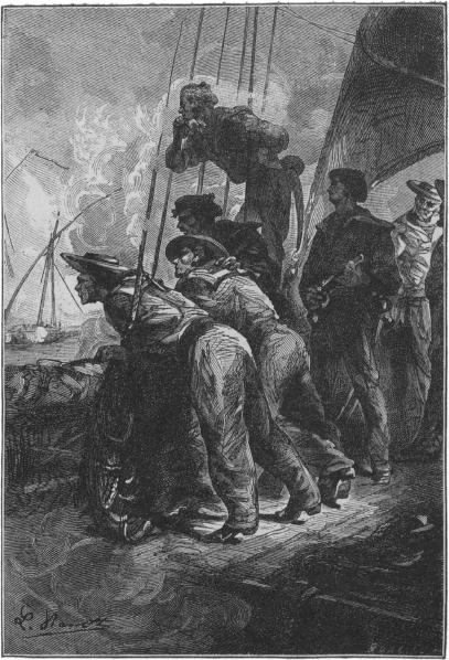 De e pillanatban a Syphanta fedélzetét ellepték azok, a kik a legénység közül életben maradtak. Sikerült feltörniök a legalsó hajóüreg csaptató ajtaját, a melyet rájuk zártak és most felrohantak a hajó-lépcsőn.