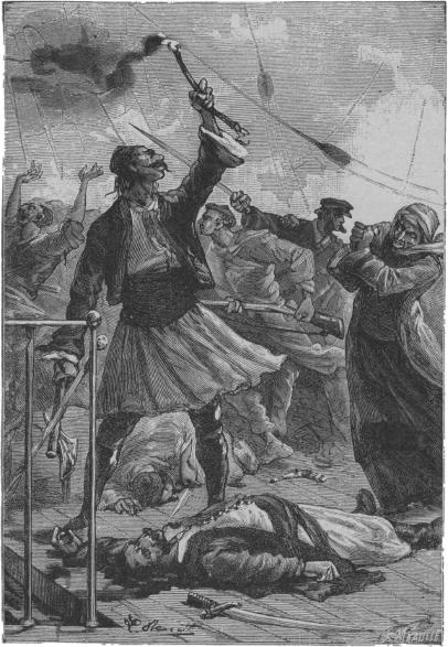 – Éljen Görögország! – kiáltá d’Albaret Henrik, mialatt a Syphanta szineit felvonták a főárboczra.