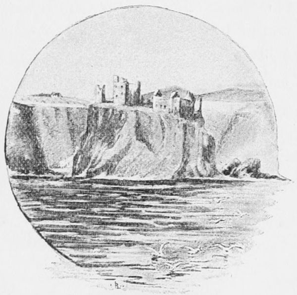 We passed Aberdeen about six o’clock, but at too great a distance to obtain a definite view. About breakfast-time we[77] were off Stonehaven, which threw back from its windows the rays of the morning sun. It was a glorious day. Not a cloud darkened the sky, not a ripple broke the surface of the sea except in the track of the ship. Presently we were abreast of the ruins of Dunottar Castle, perched on its rocky pedestal—the veritable name-mother of our ship. The breakfast-bell was ringing (a welcome sound in ordinary circumstances), but every one was loath to leave the deck. The order was therefore given to lie-to until that necessary rite had been performed. Then we returned to the deck with satisfied spirits, and gazed for half an hour or more on the beautiful scene. Artists, photographers, and scribes were soon busily at work, all eager to catch the fleeting beauty.