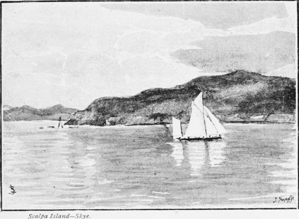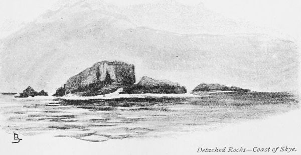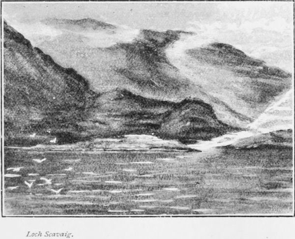 Wednesday morning was dull and misty. We had to feel our way cautiously between Eigg and Rum in the direction of Skye. No view could be obtained either of the Coolins or of the mountains of the mainland. It was indeed tantalising to know that we were in the neighbourhood of some of the grandest scenery in Scotland, and to be unable to see a vestige of it, except occasionally a few outlying rocks, or a mountainous headland swept by the mist. Early in the day we cast anchor in the Sound of Soa, near the entrance to Loch Scavaig.
