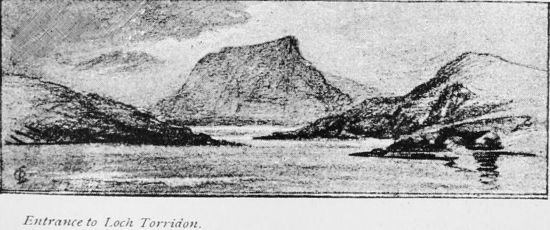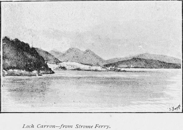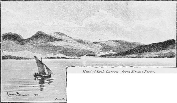 At the entrance to Loch Carron, the parallel beaches on opposite sides of the loch were mistaken by not a few on board for railway embankments. Like the parallel beaches of Glen Roy and the other valleys of Lochaber, they are obviously old moraines, but that does not make them less interesting; rather more so. Unfortunately, we reached Strome Ferry pier just in time to see the eleven o’clock train steam out of the station, and meander along the coast of the Loch. It was rather aggravating,[55] no doubt; but everything comes to him who waits; and our disappointed friends, who wished to go southward, were able to enjoy a drive over the crest of the promontory to Balmacarra, and to return in time for the two o’clock train.
