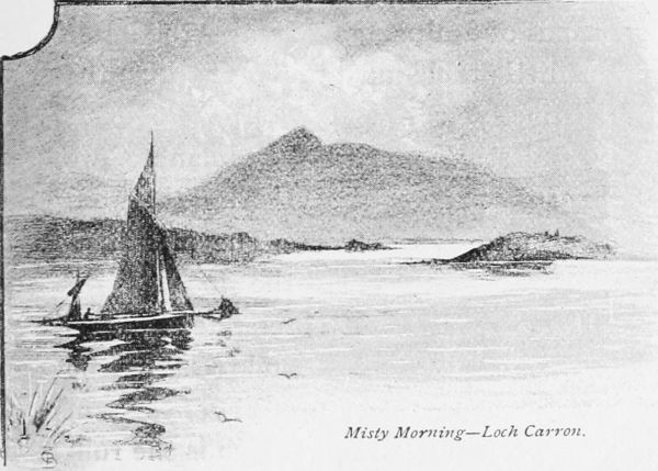 The return voyage in the evening was very fine. As we emerged from Loch Alsh and crossed Loch Carron, we had again a grand view of the Coolins, cloud-capped and solemn, and traversed by the axled rays of the setting sun. We steamed in the direction of Loch Kishorn,[60] a northerly arm of Loch Carron, where the ‘Dunottar Castle’ awaited us, and where we anchored for the night.