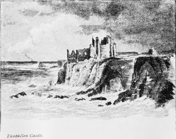 Tantallon Castle, like Dunottar, stands on a detached rock, and is accessible from the mainland only at one point. It is famous in the history of Scottish wars, and especially[89] in that of the house of Douglas. Every one is familiar with Scott’s graphic description of it, and of the parting scene of Marmion and Douglas at its gate:—