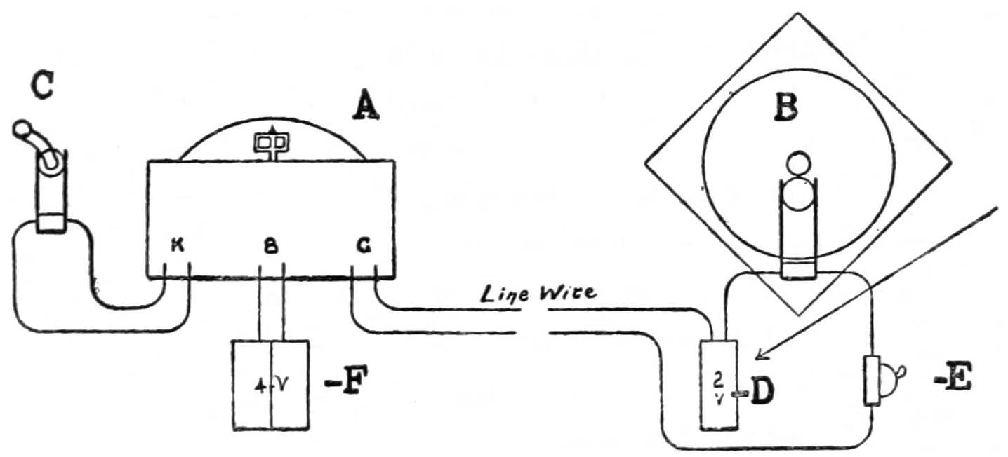 The principle of projection is decidedly novel and may be understood from the accompanying diagram, Fig. 22. The objective with its prism is mounted on one side of the plate, while on the other side of the latter is a second prism on the longitudinal axis of the lantern condenser. The light from the lantern B strikes the prism C and there is bent at right-angles towards the image on the plate A. Passing through the plate, it enters the lens D, to which the prism E is attached, and once more the ray is deflected310 at right-angles to be thrown upon the screen F. An ordinary magic lantern suffices for the purpose, and the incandescent mantle and gas may be used as an illuminant—petrol gas and acetylene are equally suitable—if electricity or the oxy-hydrogen light is not available. The picture on the screen may be of any desired dimensions, inasmuch as the small images, owing to their sharpness, clearness, and striking wealth of detail, enable enlargement to be carried to any degree, so long as the illuminant is sufficiently powerful.