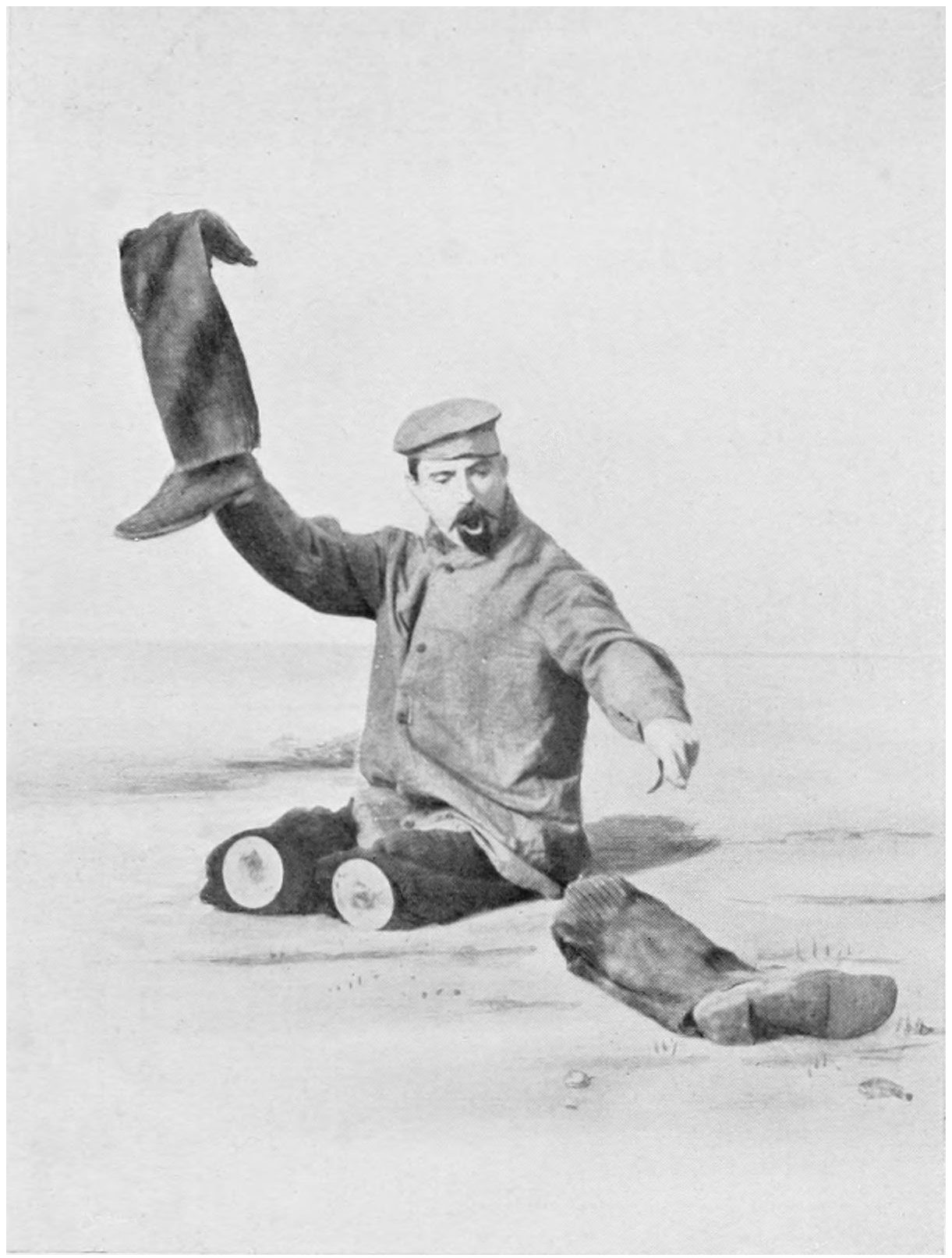 The producer giving instructions to the principal actor and his double, the legless cripple. The dummy legs in the foreground.—See page 211.