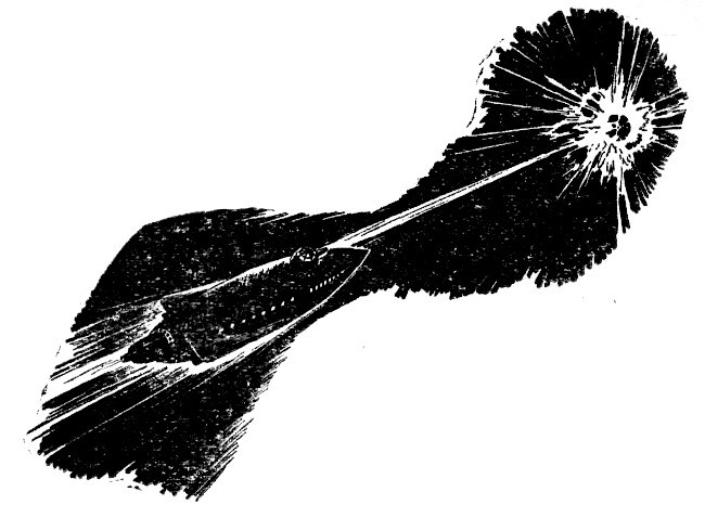 The energy of the incoming torpedo raced through the Black Widow in a velocity wave that blasted the ship itself into incandescence. In a steep wave-front, the vaporized ship exploded in space like a supernova.