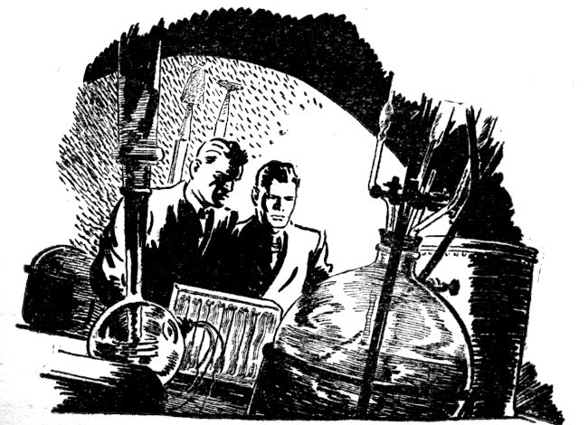 The man in question was oblivious to these plans on his future. He was standing before a complicated maze of laboratory glassware and a haywire tangle of electronic origin. He looked it over in puzzlement, and his lack of enthusiasm bothered the other man. Wesley Farrell thought that his boss would have been volubly glad to see the fruits of his labor.