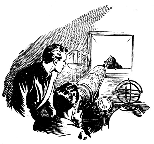 "Then yell," grinned Walt. "Look, Don, this should be pretty. Let's hike to the star-camera above and watch. We can use the double-telescope finder and take pix, too."