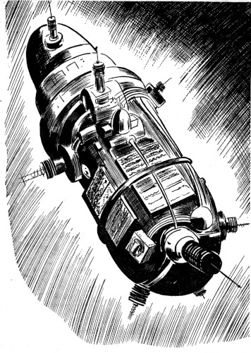 "Not as much as I'd like to do," said Channing. "I can't help much. We've got most of the place stopped off with the air-tight doors. We've been electrolyzing water, baking KClO3, and everything else we can get oxy out of. I've a crew of men trying to absorb the CO2. Jimmy Dickson is bringing me hourly reports on the CO2 content and we are losing. Slowly, Arden, but we are losing. Of course, I've known all along that we couldn't support the station on the meager supplies we have on hand. But we'll win in the end. Our microcosmic world is getting a shot in the arm in a few hours that will reset the balance."
