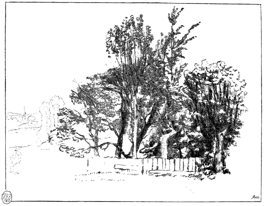 A few years later, when the achievements of Haden had grown numerous, the intelligent French critic, Monsieur Philippe Burty (whom the revival of etching greatly interested), praised and chronicled them in the “Gazette des Beaux-Arts.” There were fifty or sixty prints by that time. This was in 1864. And in 1865 and 1866, about thirty of them—including the minor but still attractive plates used as “head” or “tail-pieces”—were formally published in Paris, with a French text which consisted in part of an excellent analytical and didactic letter, written in the foreign tongue, by the artist to Monsieur Burty.